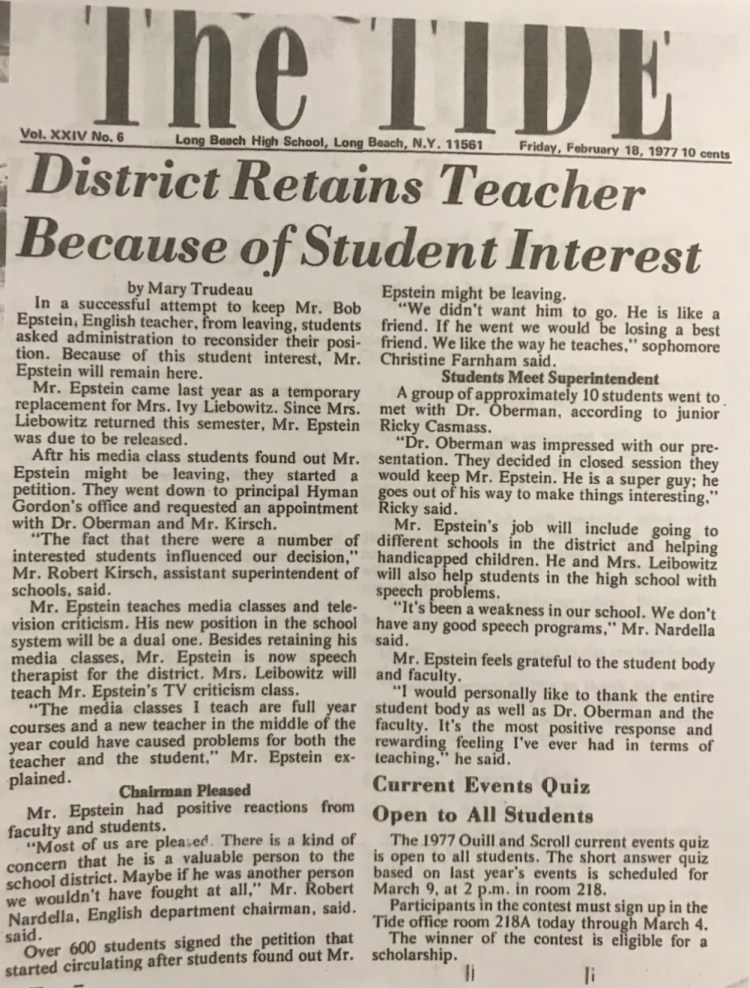 Student Newspaper Article on How the Students Saved Bob’s Job